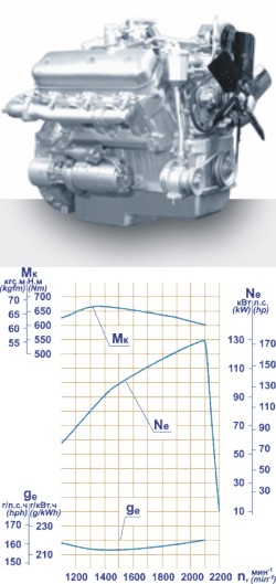 Дизельный двигатель ЯМ3 236Д-2 относится к классу евро-0, имеет шесть V-образно расположенных цилиндров, размерами 130x140мм и рабочим объемом 11,5л, на двигателе используется непосредственный впрыск топлива, жидкостное охлаждение, централизованная система смазки двигателя, привод масляного насоса от шестерни коленвала, привод ТНВД от коленвала через шестерни, имеет центробежный очиститель масла, фильтр грубой очистки масла, топливный фильтр, водяной насос повышенной производительности, ТНВД, генератор, привод вентилятора, турбонаддув отсутствует.