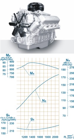Дизельный двигатель ЯМ3-238М2 относится к классу евро-0, имеет восемь V-образно расположенных цилинров, размерами 130x140мм и рабочим обьёмом 14,86л, на двигателе используется непосредственный впрыск топлива, жидкостное охлаждение, централизованная система смазки двигателя, привод маслянного насоса от шестерни коленвала, двигатель имеет центробежный очититель масла, фильтр грубой очитски масла, топливный фильтр, водяной насос повышенной производительности, ТНВД плунжерного типа, привод ТНВД, привод вентилятора, генератор, стартер, турбонаддув отсутствует.